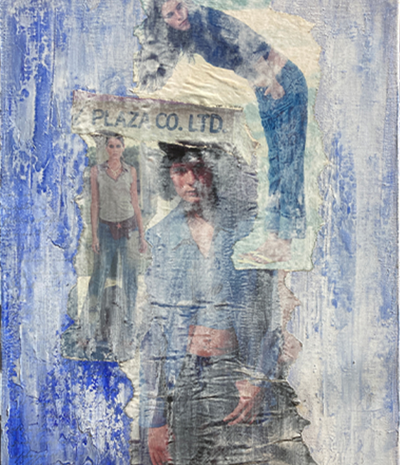 Eine Technik verschiedener flächiger Elemente, wie Papier, Pappe, Zeitungsausschnitte oder Stoffen, die auf einem Bildträger angeordnet werden. Darüberhinaus kann die Collage mit Krackelierlack überarbeitet werden.